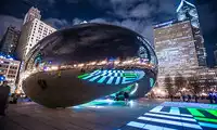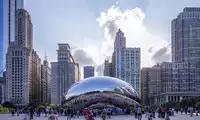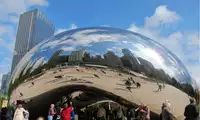 Here you can see Chicago's famous buildings, the Big Bowl and the Human Face Fountain, which add color to this architectural capital.