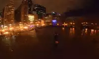 The lights in the high-rise buildings around the park are dim, and it seems that many people are working overtime.