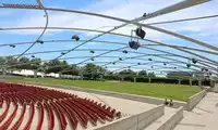 The open-air theater in Millennium Park is a large outdoor stage that can accommodate 11,000 people. It has complete sound facilities and numerous performances are held here.