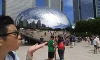 There's a giant kidney bean in Millennium Park. Tourists try to find themselves inside it, while students on a trip line up in front of it, jumping in various poses and taking photos.
