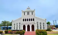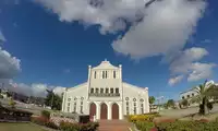 Mount Carmel Cathedral, built on Saipan in 1945 after World War II, has long served as a spiritual pillar for the island's residents. Located on Beach Road, the cathedral was built during Spanish rule and was destroyed during World War II. The white building you see today is a later reconstruction. Managed by a suburban community, the cathedral is remarkably well-preserved. Besides its magnificent exterior, the cathedral grounds are filled with a variety of vibrant flowers, creating a delightful spectacle.