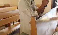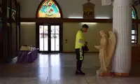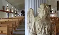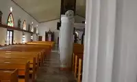 The church is open to visitors, but since it is a weekday, no one is coming to pray.