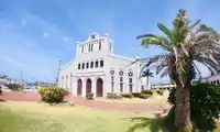 This church is located in the southern part of Saipan. If you're staying at the Kanoa Hotel or the World Hotel, it's a 10-minute walk to the right. It's also very convenient for those staying at hotels in the northern part of the island. The front of the church is quite magnificent, and many people come here to take wedding photos.