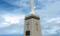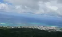 Mount Tapochao is Saipan's highest peak, standing 474 meters above sea level, located in the center of the island. From the summit, visitors can enjoy a 360-degree panoramic view of Saipan, including the international airport, Gunkanjima Island, and Suicide Cliff. The observation deck at the summit is surrounded by a fence, with a large statue of Jesus standing on one side and historical images and information about the Battle of Saipan on the other. Driving up the mountain is best done in an off-road vehicle, as the winding road is gravel and has a slight slope.