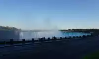 Niagara Falls consists of three sections, and you can see the entire falls from Canada. Looking across from here, you can see the United States, and the waterfall on the other side is the American Falls. Next to the falls is the Rainbow Bridge. The weather was absolutely perfect! It really showcased the falls's beauty!