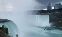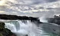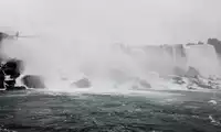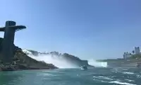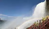 Niagara Falls is truly magnificent. Looking down from above doesn't give you the full experience; you absolutely have to take a boat ride to see it up close. It's so... The raincoats provided don't actually block water at all; they only protect your bag. The water and wind near the falls can be quite disastrous, but it's incredibly refreshing. Remember to wait for a rainbow; it's the perfect complement to the falls.