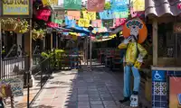 Old Town San Diego still retains buildings dating from 1820 to 1870, along with Mexican-style galleries. Papel Picado, a window decoration resembling a traditional Mexican folk art, is a familiar sight in the movie "Coco." These window decorations are often used in festivals and religious ceremonies. El Centro Artesano, a craft shop attracts visitors from all corners of the world. The pottery, wind chimes, and other small souvenirs sold inside and outside the shop embody a distinctly Mexican aesthetic.