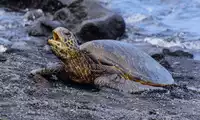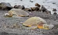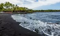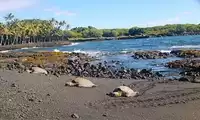 Punalu'u Black Sand Beach is Hawaii's best black sand beach, lined with coconut palms and often home to giant Hawaiian green sea turtles basking in the sun. The beach is equipped with picnic areas and restrooms.