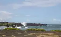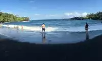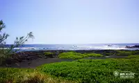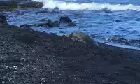 The beautiful black sand beach is a favorite habitat for Hawaiian sea turtles, which are said to be endangered! The beach is a long crescent of black sand nestled against low dunes, with rock outcrops on the shoreline and strong currents.