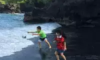 Black Beach is probably best known for its black sand and the abundance of sea turtles. I went there specifically for the turtles, but unfortunately, I didn't see a single one. I asked the locals, and they seemed to say you don't usually see turtles at noon (lol). Well, looking at the local children playing in the water on the beach, I felt like besides the turtles, this place is still worth exploring.
