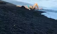 The black sand beach is warm and soft, not prickly at all, and super comfortable.