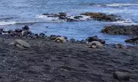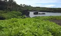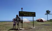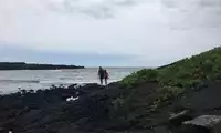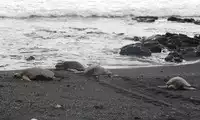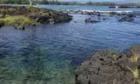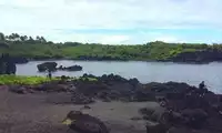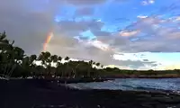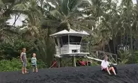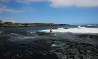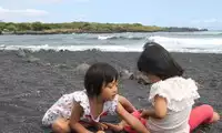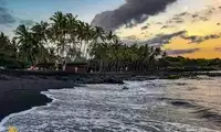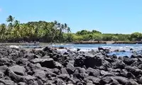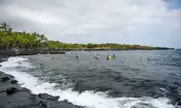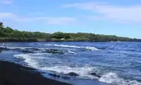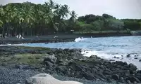 Formed by lava from a former volcano, the black sand beach is one of Hawaii's most distinctive beaches. The water is rocky, so swimming is not recommended. Endangered species like hawksbill and green sea turtles and Hawaiian monk seals can often be found on the beach, so please be mindful to avoid disturbing them.
