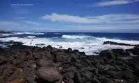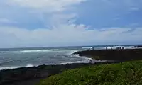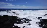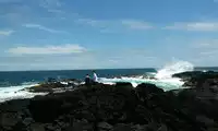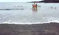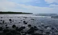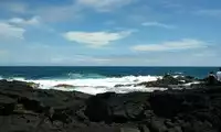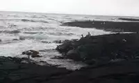 A black sand beach, mostly rocks, mostly black volcanic rocks formed by the sea. It is worth a visit if you pass by.
