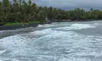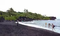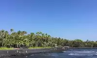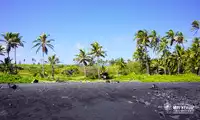 The black sand beach is a beach made up of black rocks and sand, with a coconut grove behind it. The scenery is nice, but that's all.