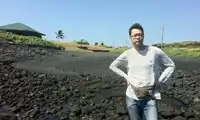We walked along the black sand beach (Punalu'u Beach). The sand here is jet black, very fine and soft. Luckily, we saw a big turtle. I approached it quietly and took a picture of it. Hahahaha.