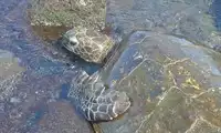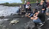 Watch the hawksbill turtles (Honu'ea) at Punaluu Black Sand Beach Park. To protect them, a special area has been designated for their habitat on the black sand. It's a wonder how the hawksbill turtles knew to come here. In the midday heat, the hawksbill turtles basked in the sun, some using their feet to throw sand over themselves to cool down, while others struggled to burrow into the sand. It was quite an interesting sight.