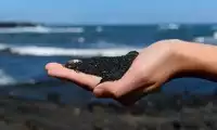 Black sand beaches are formed when volcanic eruptions cause hot lava flows to surge into the ocean. The cooling water quickly hardens the lava's crust, which in turn heats the water into a massive mass of superheated steam. Unable to withstand the tension of the steam within, the lava's crust breaks apart, shattering into lava fragments. These fragments are primarily composed of iron-rich mafic minerals like magnetite (Fe3O4) and gabbro, giving them their black color. Subsequently, the lava fragments accumulate along the coast, where they are eroded and polished by waves over the years, ultimately transforming into black sand. The Big Island's once-famous black sand beach has long been swallowed by lava, and now the only place to experience its unique charm is at Punalu'u Black Sand Beach. Perhaps due to its recent formation, the volcanic sand has larger grains.