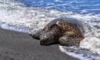 Punalu'u Beach Park, because the black beach has a higher heat absorption capacity, green turtles and hawksbill turtles also come to this warm place to lay eggs.