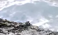 The remnants of the volcanic eruption, eroded over tens of thousands of years, have become the region's unique black sand. Along the beach, there are various reefs and several small ponds. Our tour guide explained that a family of sea turtles resides in these ponds. We walked in and asked a newly emerged tourist if they had seen any turtles. Disappointed, we continued toward the ponds. Our eagle-eyed guide instantly spotted four turtles of varying sizes swimming beneath the surface, their bodies sheltered by the wind and the ripples on the surface. While we were captivated by the still-unclear turtles, I was already captivated by the rocky hillock nearby. I asked the guide if we could go over and take a look. With his and my wife's permission, I climbed up the reef alone. After climbing over the rocks, I was astounded by the view: turquoise water crashing against the rocks, creating white waves. At my urging, all six of us made the climb. Perhaps the guide wasn't thrilled with our adventure; after all, it was a risky endeavor, and he had to consider our safety.