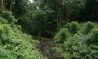 To reach the waterfall's pool, you have to wade through knee-deep water. I took off my skirt and walked across in my bikini and river trekking shoes. The waterfall itself wasn't particularly impressive; the wild nature of the area was what mattered. Wading and swimming were the highlights of this trip.