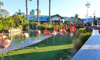 There are also a bunch of flamingos under the roller coaster! They are super aggressive and sometimes they strut right on the road, forcing tourists to give way!