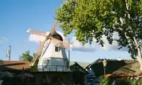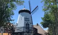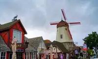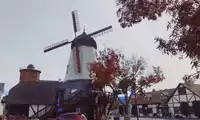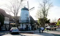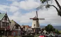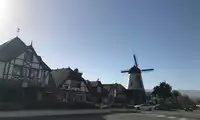 Solvang (Danish Village) means "sunshine-filled countryside" in Danish. It was built by Danish immigrants in the early 20th century. It is a small town full of Danish style. The symbol here is a quietly turning windmill.