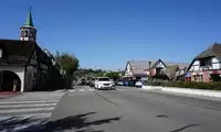 Solvang is a small town with a main road, Mission Dr (also known as State Highway CA-246), running through it. The town is full of Danish-style buildings.