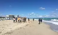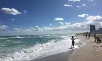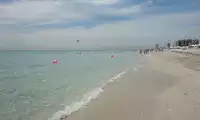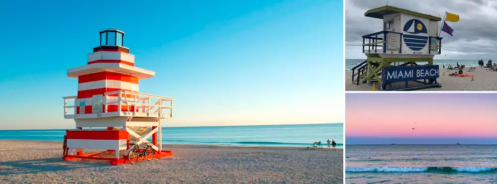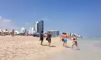 The excellent South Beach in Miami has fine sand, gentle slopes, clear water, and is a popular tourist resort.