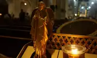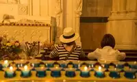 Many of the visitors are tourists, not necessarily Catholics. Some are Christians from New York City who come here to light candles and sit quietly on chairs to feel the Lord's hearing.
