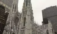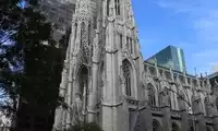 (St. Patrick's Cathedral) You can see it by walking along Fifth Avenue