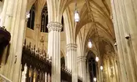 St. Patrick's Cathedral, located on Fifth Avenue, is the largest Catholic church in the United States. He is the patron saint of the Irish. Founded by Irish immigrants in New York in the 19th century, the cathedral holds a parade every March 17th, St. Patrick's Day. The Gothic architecture boasts magnificent spires, stained glass windows, and bronze statues. Inside, three pipe organs sound, their melodies seeming to shut out the bustling city.