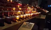 It's a beautiful place. We happened to catch a mass and listened quietly for a while. There are candles you can light for blessing, two dollars each, but there's no one to supervise; it's all up to you. We lit two, and it was beautiful under the cathedral's dome.