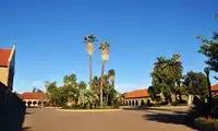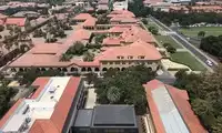 The campus facilities are truly excellent: spacious coconut-lined avenues, lush green lawns, Spanish-style buildings with red roofs and yellow walls, deep and intertwined classical arches and corridors, and a campus lined with green trees and blooming flowers...