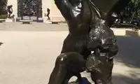 Rodin's sculpture stands in the square, and visitors can stand side by side with a group of famous "Thinker" and think together.
