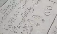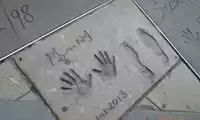 So that's it. The celebrity handprints at the door are okay. Let's see who we can find.