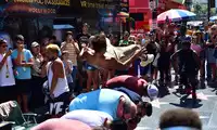 There happened to be a celebrity premiere at the Chinese Theatre. Visitors gathered around the railings, hands raised high, catching the ticket holder's attention. It took a while to figure out: if we were lucky enough to get a yellow wristband, we'd get into the Chinese Theatre to watch the premiere and get a close-up glimpse of Hollywood stars. This time, it was Denzel Washington's film, and we joined the crowd, but unfortunately, our luck wasn't so good.
