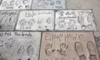 There are giant footprints and handprints of celebrities. I stepped on Will Smith's. His feet are quite large. Most people just stood outside taking pictures. They didn't really have time to go in and watch a movie.
