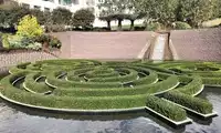Another distinctive feature of the G͟e͟t͟t͟y͟ c͟e͟n͟t͟e͟r͟ is the harmonious integration of the architecture and the surrounding landscape. The museum's courtyards are dotted with ponds, rocks, and plant features. The large circular central garden, with over 400 azaleas, forms a botanical maze inspired by classic European horticultural traditions.
