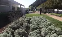 The Getty Center has a restaurant and outdoor snack bar. If you're tired, you can sit down and have a cup of coffee, or just relax on the lawn. It's a place you can spend the whole day. Around 5 p.m., Los Angeles' unique pink sunset envelops the Getty Center, casting a soft, warm red hue on the white aluminum panels, revealing another side of the Getty.