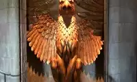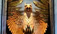 Next, we arrived at the foot of Flight of the Hippogriff, Universal Studios Hollywood's first outdoor family-friendly roller coaster. As the ride took off, I snapped a photo of it, its eyes blinking—a truly lifelike sight.