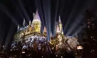 The Harry Potter Castle light show is held every half hour at night, with stunning lighting effects that are quite spectacular.