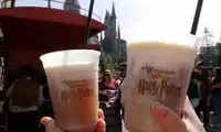 In addition to the Harry Potter area, there's another drink I highly recommend: Butter Beer. Don't be fooled by the name; Butter Beer is just a drink, not alcohol. It tastes like a fizzy drink with foamy ice cream, and it's delicious.