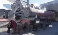 As soon as you enter the gate, you'll see the mysterious Hogwarts Express, which takes you straight to the school of witchcraft and wizardry. There's a surprise at the entrance: the handsome conductor is waiting for you to take a photo.