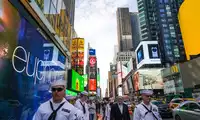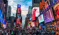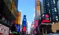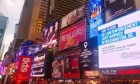 Times Square is a bustling neighborhood in Manhattan, New York City, known as the "Crossroads of the World." Approaching Times Square, one is surrounded by vibrant neon lights, street performers, and large screens constantly broadcasting news, music videos, and television programs, enough to captivate everyone. Broadway theaters, a plethora of dazzling neon signs, and television-style advertising billboards have become symbols of New York, reflecting Manhattan's distinct urban character.