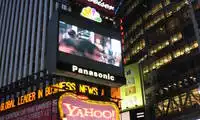 The sight of their own images on the giant screen attracted many tourists to squeeze in, and the people joined in the noisy cheering of the huge TV billboards on the outer walls of the skyscrapers.