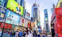 Times Square is a place with rows of shops. You can go shopping and walk around the streets, where you will see many street performers.