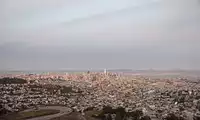 Twin Peaks isn't very high, but you can see the whole of San Francisco from there. The most distinctive features are the Golden Gate Bridge and the colorful rooftops.