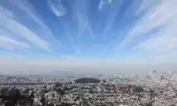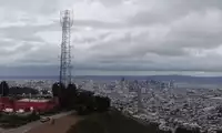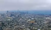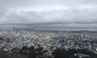 From the top of the mountain, you can have a bird's eye view of the entire city of San Francisco. Although the sky is cloudy, you can still see the sea in the distance and even the Golden Gate Bridge.