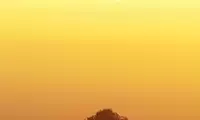 The sun has set and the entire mountain is bathed in warm yellow sunlight.