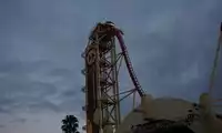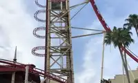 The roller coaster is called Hollywood Rip Ride Rockit, and its characteristic is a 90-degree rise followed by a huge dive and a whooshing start.